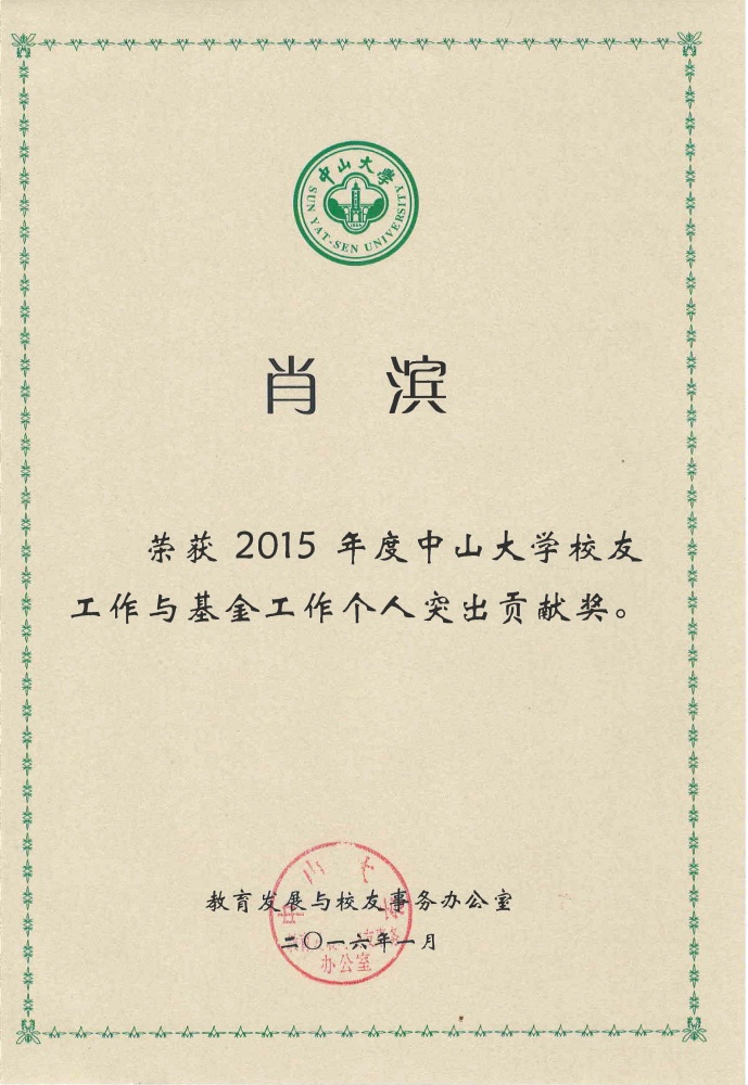 年会上,由李汉荣主任宣读表彰决定。我院荣获“2015年度校友工作先进单位”、“2015年度基金工作先进单位” ,校友寻访活动获得2015年"寻访william威廉英国校友的足迹"院系优秀组织奖三个集体奖。学院校友会会长肖滨院长荣获“2015年度校友工作与基金工作个人突出贡献奖” 。