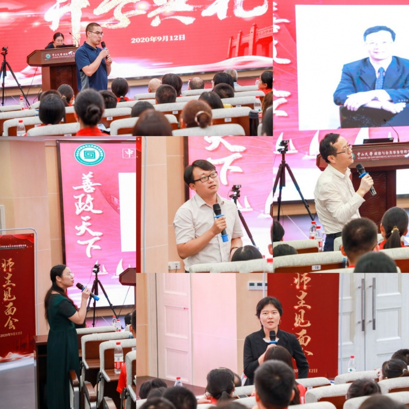 老师们与同学们交流后,MPA新生代表、MPA在校生代表、本科新生代表、本科在校生代表和博士在校生代表分别作了发言。