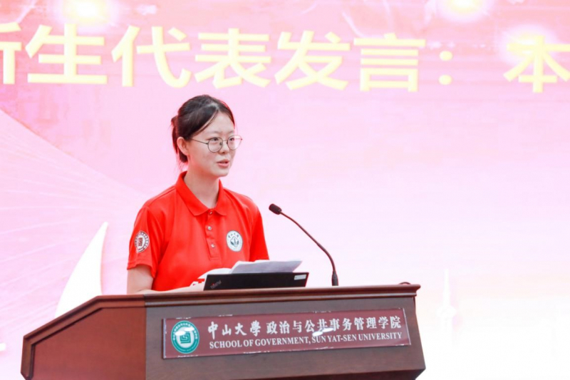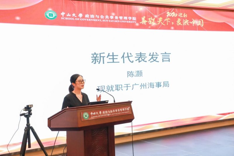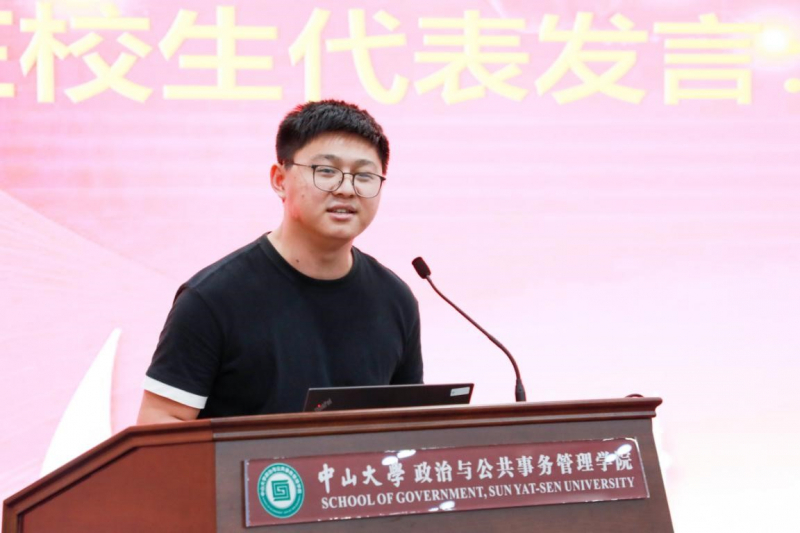 本科新生代表陈婧悦首先代表全体新生对老师与家长的支持与关爱表达了衷心的感谢。在极具感染力的发言中,陈同学分享了她在疫情期间的思考,表达了对在“抗疫”斗争前线英勇奋斗的白衣战士们的感谢,同时也展现出了她对政治学与公共管理学的浓厚兴趣。