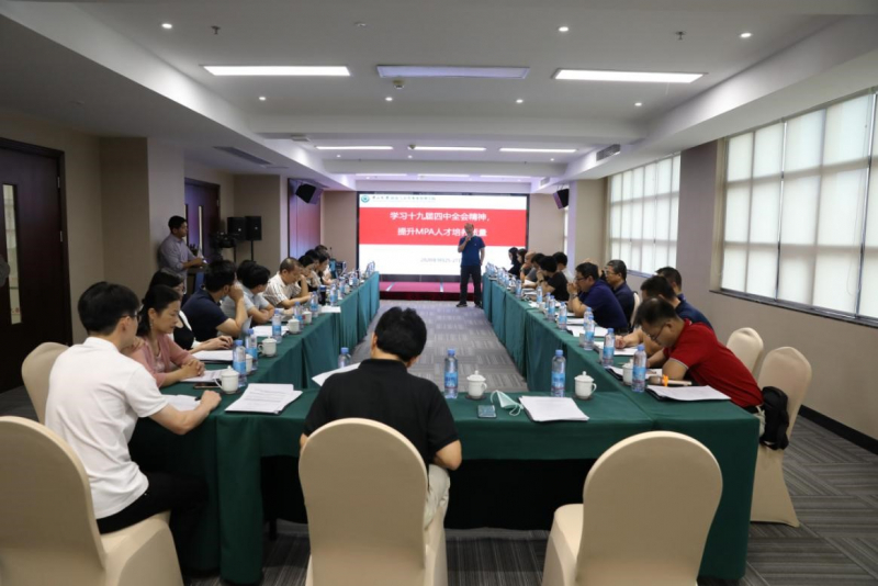 9月26日下午,学院老师召开“学习十九届四中全会精神,提升MPA人才培养质量”工作研讨会。谭安奎院长表示,党的十九届四中全会通过了以国家治理体系和治理能力现代化为主题的公报,与政务学院的学科特色高度契合,其中学院的MPA教育就是培养公共治理人才的事业。学院把“学习十九届四中全会精神,提升MPA人才培养质量”作为培训、研讨的主题之一,是希望进一步凝聚共识,提升立德树人的成效。MPA教育中心主任陈那波向参会老师介绍MPA项目发展现状,并结合评估、建设工作组织讨论MPA项目的人才培养宗旨。参会老师结合上课、指导学生的经验对MPA学生培养的各个环节提出了许多建议。