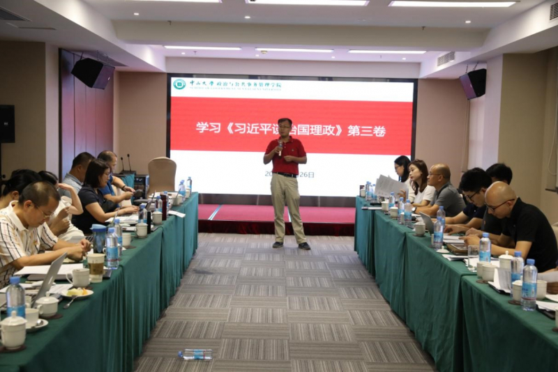 9月27日上午,老师们来到端州区城东街道星湖社区走访,参观调研“星湖同舟”社会治理共同体建设实践创新,观看介绍视频,并与区委、街道、社区的领导干部座谈交流。随后,老师们组织开展了“落实十九届四中全会精神,推进‘中国之治’案例教学”研讨会。会议由朱亚鹏教授主持,张紧跟、陈那波、练宏老师分享了他们在课堂教学、学生培养、教研结合方面的经验,与会老师进行了热烈的交流,并就如何结合案例进行教学及论文中的案例应用作了深入探讨。