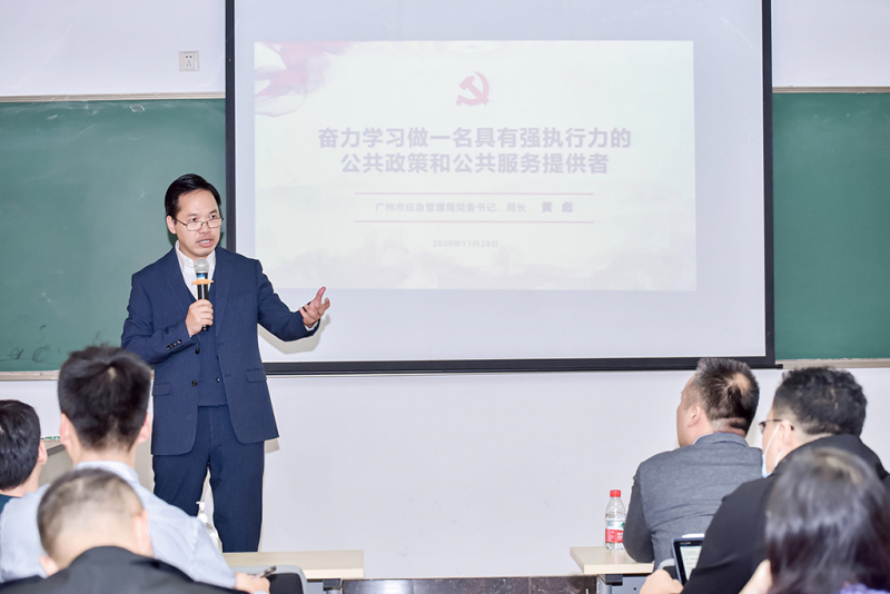 黄彪局长以《奋力学习做一名具有强执行力的公共政策和公共服务提供者》为题,分享了自身的工作经历,介绍了当前现代化应急管理体系的重点议题,同时对年轻公务员提出了四个头(口头、笔头、念头、劲头)、四个专(专一、专注、专业、专家)和四个业(行业、职业、专业、事业)的建议。