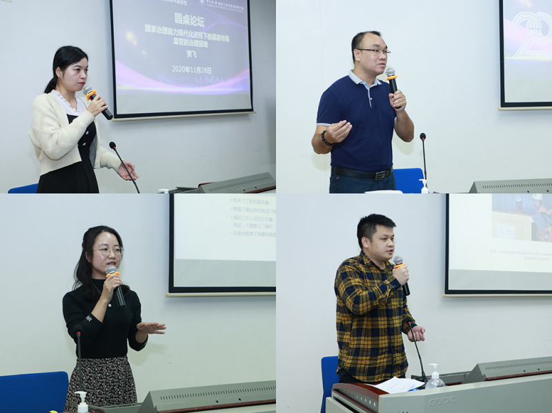 校友讲座环节结束后,活动分成四组平行圆桌论坛,分别围绕组织与人事、法治与执法、技术与治理、经济与财税四个主题展开。学生或校友发言人从自身的职业经验和研究兴趣出发,分享自身的工作经验和学术智慧,其中不乏新颖的见解和独到的观点。讲者们或风度儒雅,或深沉大气,或幽默风趣,引来同学们的阵阵欢笑和掌声。