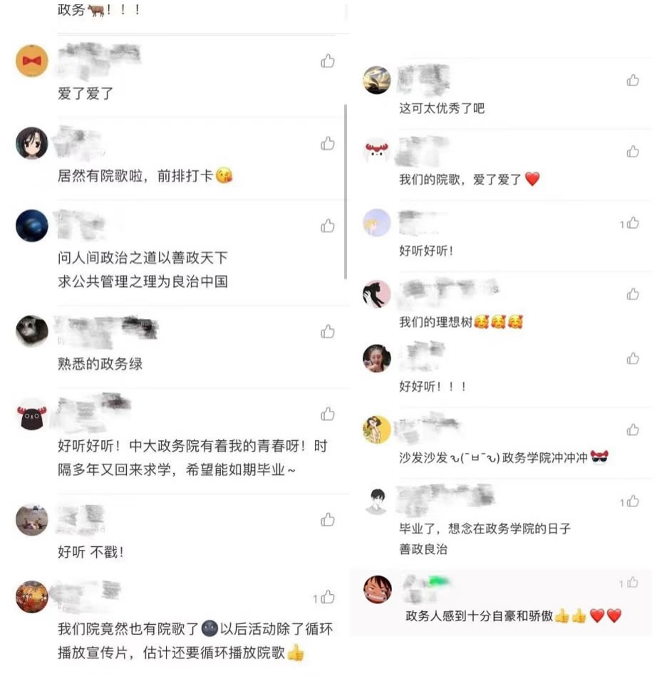 于初春播下“梦想的种子”,于盛夏深扎“生命的树根”,于秋天献出“金秋的果实”,展现的是政务人追梦不停,求实不止的坚定信念;“问学立言”、“问政立责”、“问德立本”的三问三立,体现的是厚植在每个政务人心中的理念;写下的“问人间政治之道以善政天下,求公共管理之理为良治中国” 的立院宗旨的肖滨教授,和将之凝练为铿锵有力的“善政天下,良治中国”家国情怀、凌云壮志的行政学泰斗夏书章教授,饱含着政务历代学长对后辈学子怀治国理政之抱负,为建设社会主义现代化强国不懈奋斗的嘱托与期望,是学院精神的传承与接续,每每被读出、被唱响,都勾动着颗颗心脏的热烈跳动与满腔深情的自然流出。