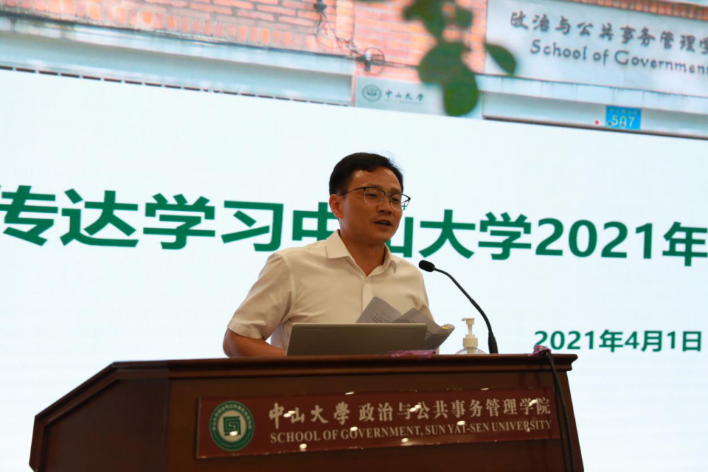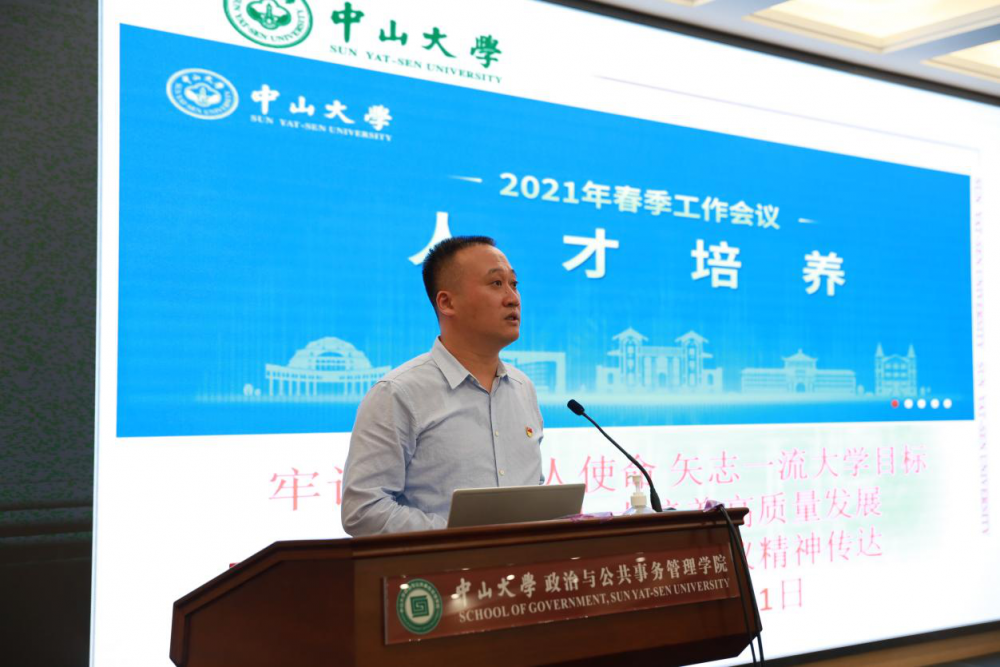 分管教学工作的叶林副院长传达了罗俊校长作的题为《牢记立德树人使命 矢志一流大学目标 加快推进人才培养高质量发展》的大会主题报告,并对春季工作会议中“人才培养”专题的内容作了重点传达。罗校长的报告总结了学校“十三五”时期立德树人的主要成绩,分析了学校目前人才培养存在的主要问题,明确了新时期立德树人的目标和路径,提出了实现高质量人才培养的具体要求。报告明确要处理好四大关系,坚持四大原则,为党和国家培养出更多德智体美劳全面发展的社会主义建设者和接班人,推动学校整体实力“稳居国内高校第一方阵”。本次春季工作会议明确提出了立德树人是学校的中心工作,为党育人、为国育才是学校的根本使命,更加凸显了立德树人的主体责任。院系作为大学人才培养的主阵地,在教学科研工作中必须紧密围绕“培养什么人、怎样培养人、为谁培养人”的根本问题,在办学实践中探索具有中大特色的人才培养理念。叶林副院长还结合了校党委常务副书记、副校长马骏,党委副书记余敏斌,副校长刘济科以及研究生院院长陈曾平等作的报告内容,传达了学校最新的政策动向。