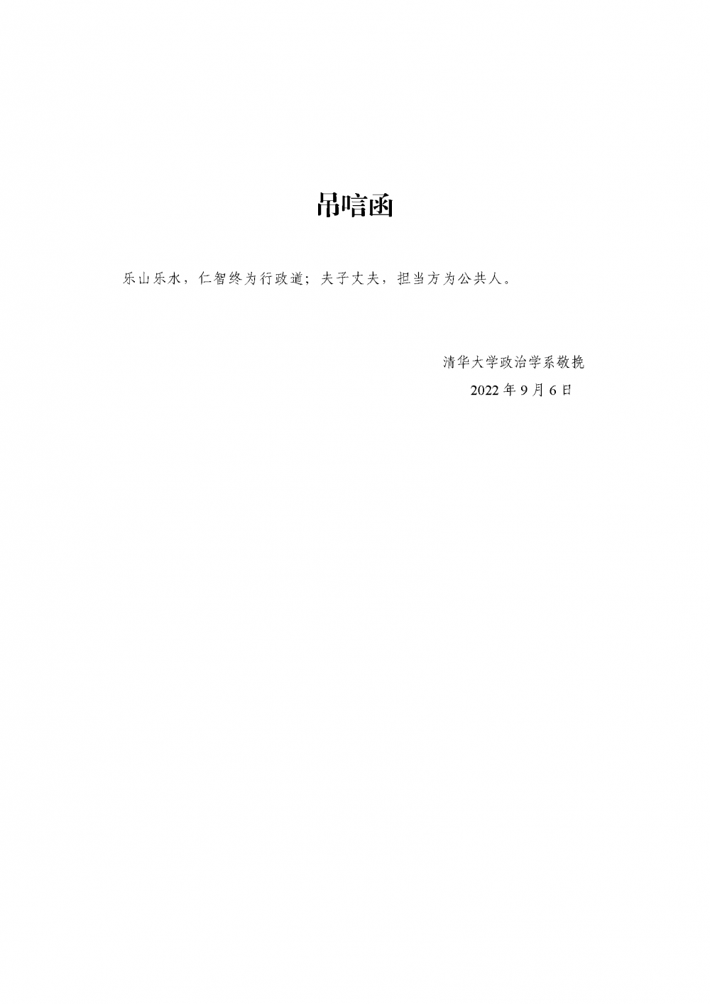 清华大学政治学系唁电