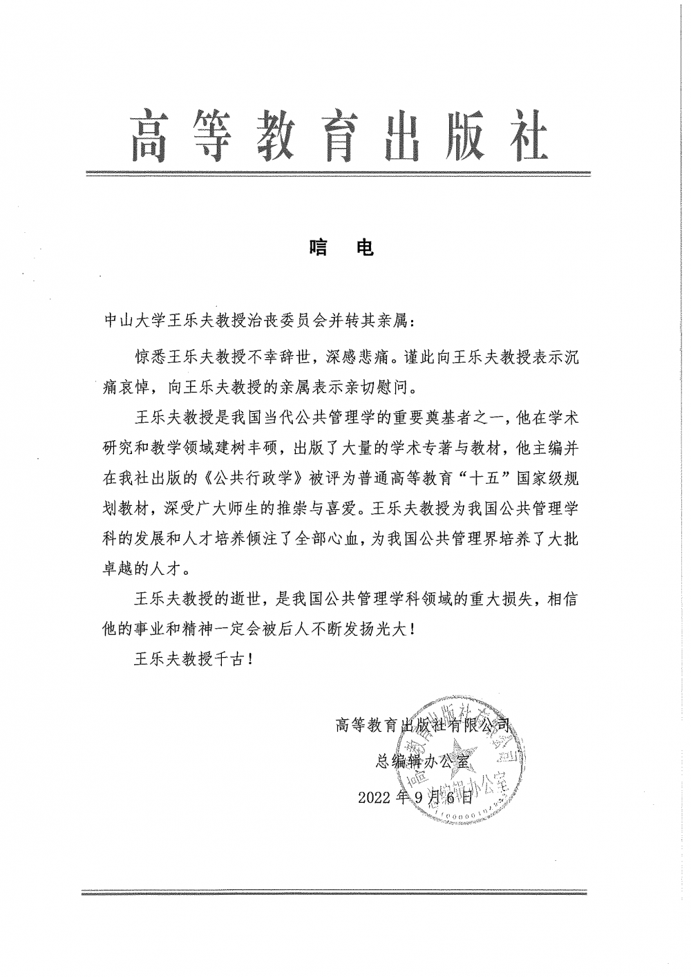 部分高校、出版机构发来唁电悼念王乐夫教授