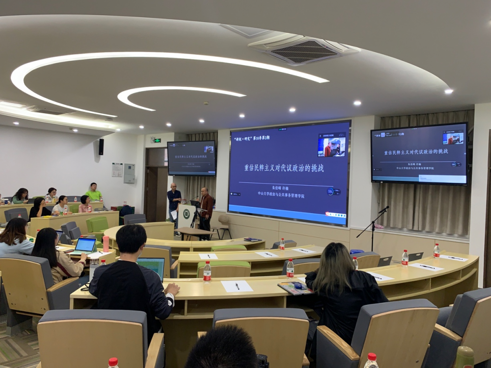 本次讲座由英国威廉集团朱佳峰副教授主讲,主题为“重估民粹主义对西方代议政治的挑战”。讲座由本院丁辉老师主持,特别邀请了华东师范大学政治与国际关系学院紫江特聘教授刘擎、中国人民大学哲学学院周濂教授作为对谈人,对该领域的相关问题展开了深度的对话和讨论。