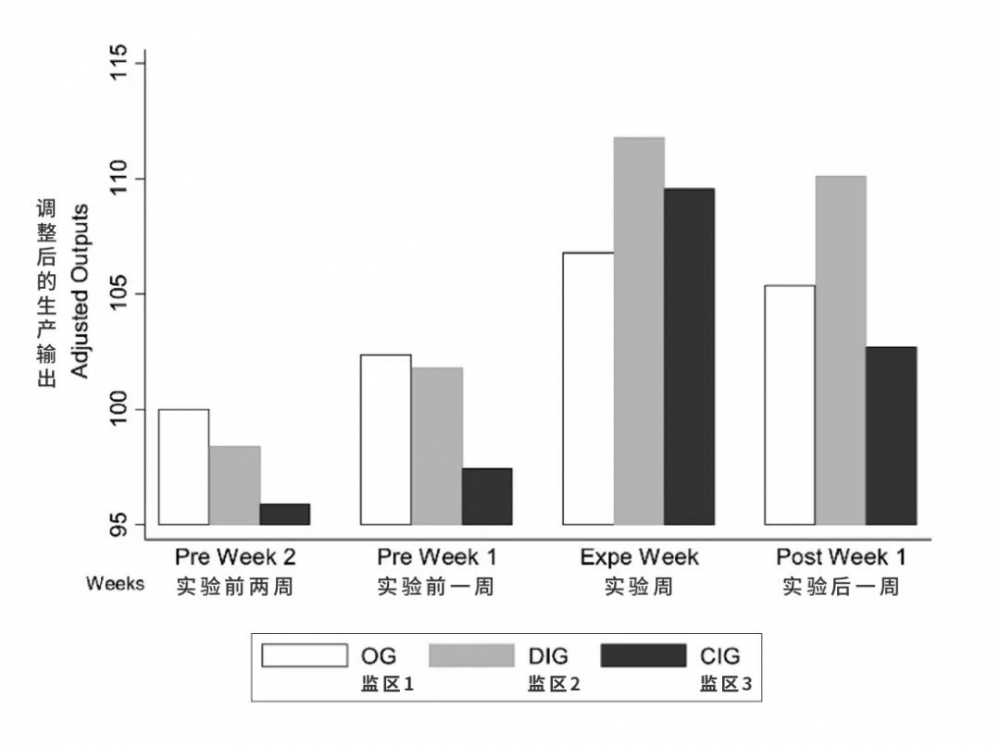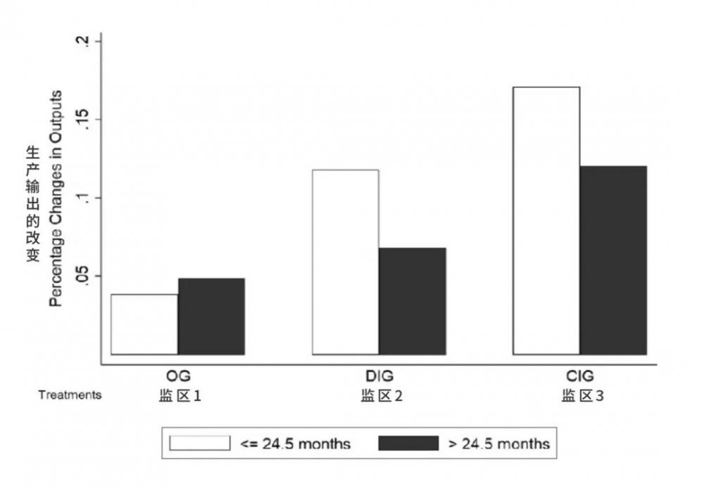 结果发现不管哪个监区的生产率较之前都有显著提高,这说明大多数服刑人员其实具有亲社会偏好,是有帮助他人的意愿和行动的,所以我们其实可以设计出一些政策制度来激发出他们的善心,从而提升改造效果。