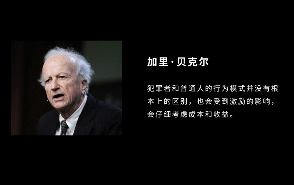 诺贝尔经济学奖得主加利·贝克尔是最早关注犯罪行为的经济学者,他认为犯罪人和普通人的行为模式上其实没有什么差别,犯罪者也要考虑成本收益,然后仔细地计算,做出是否犯罪的决定。