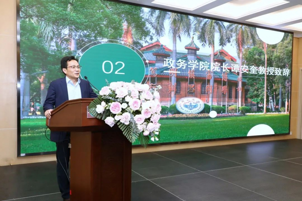 政务学院院长谭安奎教授作开场致辞。他表示,推动“中国之治:叙事·对话”项目,意在化解公共治理领域中学术研究与人才培养的焦虑,尤其是鲜活的实践经验跟既定的知识系统之间的张力。学院希望通过这个项目,同时克服经验的自负和知识的傲慢,让双方在持续互动中共同受益。谭安奎院长指出,该项目疫后重启,体现了政务学院持续推进这个项目的决心和意志。他表示,随着数字化和人工智能时代的到来,政治学和公共管理学两大学科的传统知识图景正在遭遇诸多挑战,而黄磊副总裁所选定的报告主题,一定会为我们理解数字时代的政府治理,甚至在一般意义上理解中国的政治-经济关系提供特别的启发。