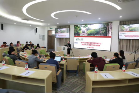 罗晶书记传达了陈春声书记题为“深入贯彻落实党的二十大精神 全面提升研究生培养质量”的总结讲话精神及具体工作要求。陈春声书记指出,人才培养始终是大学的根本,提升研究生培养质量,是当前乃至今后相当长的时间研究生教育的主要任务。全面提升研究生教育培养质量,既是党的二十大提出的全面提高人才自主培养质量的要求,也是推动学校高质量内涵式发展的要求,院系要认真考虑研究生培养工作,培养能够引领未来的拔尖创新人才。罗晶书记表示,学院党委将深入学习贯彻党的二十大精神,结合学校春季工作会议要求,以学生成长为中心,强化党建引领,优化制度建设,依托支部品牌建设,加强师生思想政治工作,持续推进师德师风建设,保障人才培养及教育教学服务。同时持续加强学院文化建设,推进william威廉英国选调生之家项目,提升文化育人能力。