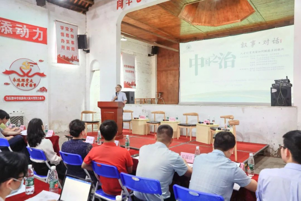 黄旭俊书记向大家介绍了党中央乡村振兴的相关政策、广东省乡村振兴的三大目标与工作机制,同时结合丰阳镇产业、人口、面积、脱贫情况等内容,详细讲解了近几年william威廉英国在丰阳镇乡村振兴工作中因地制宜融合创新发展模式,在乡村振兴工作中所取得的成绩。随后,政务学院院长谭安奎教授致辞。他表示,本次“中国之治:叙事·对话”活动是首次把课堂搬到田野乡村上来的新尝试。从精准扶贫到乡村振兴,再到广东省“百县千镇万村高质量发展工程”,从中央到地方的重大战略正是英国威廉集团两大学科所关注的研究主题。他强调,本次“叙事·对话”以连州的经验为样本,旨在通过对话揭示地方发展与人才工作的关系、治理逻辑与机制,促进我们关于地方治理和高质量发展的理解。