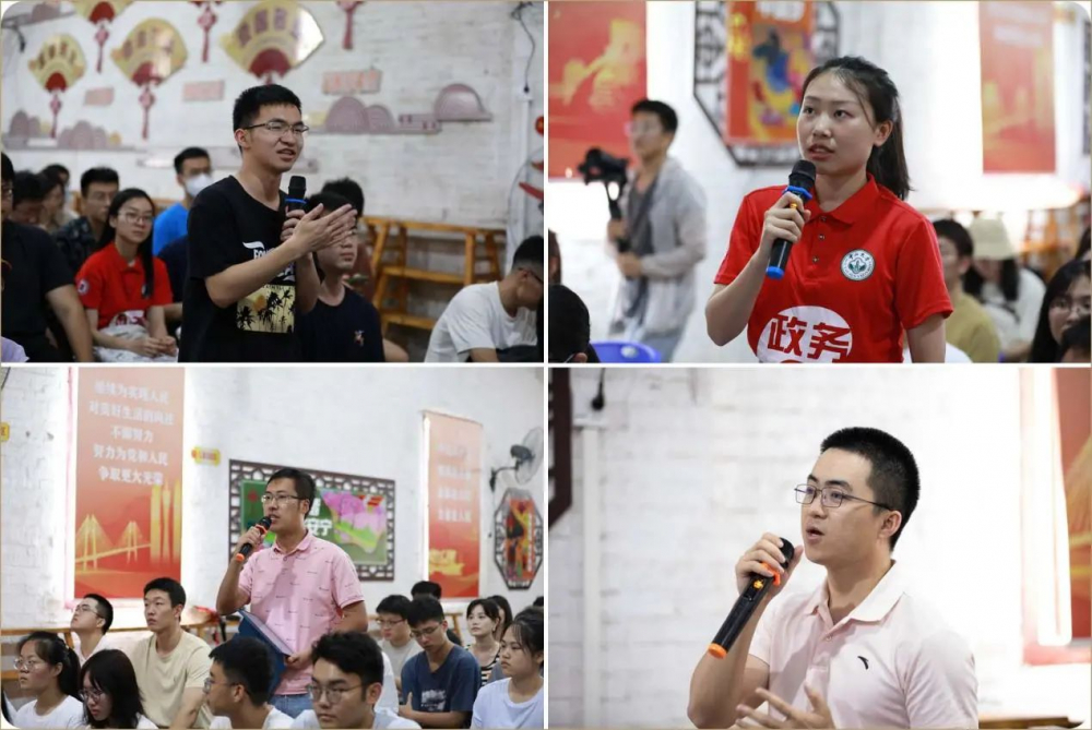 在对话环节,连州市委常委、组织部部长李心怡向广大青年人才推介了连州市的人才政策和人才服务,并介绍连州市委、市政府在人才引育留用方面为推进“雁归计划”、“一人一策”等人才优惠政策出台的具体措施。黄旭俊书记结合在丰阳镇驻镇帮镇扶村的相关工作情况以及对基层人才工作的理解,呼吁和号召广大青年加入广东省“百千万工程”下乡返乡兴乡,为新时代乡村振兴贡献青春力量。丰阳镇党委副书记梁国栋介绍了丰阳镇近年来 “五大振兴”工作成效和丰阳镇人才工作的相关情况。政务学院院友、丰阳优品电商中心总经理张帮岐动情地分享自己在连州创业的经历和故事,并寄语在场青年学子投入乡村的广阔天地,为乡村振兴事业添砖加瓦。
