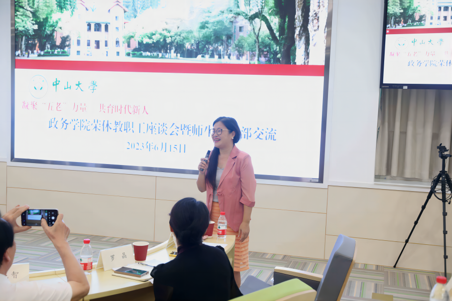 政务学院院长谭安奎教授、党委书记罗晶、副书记谭英耀,荣休教师代表陈瑞莲教授、吴志雄教授、郭巍青教授、蔡书兴副教授、谭昆智副教授、谢霞飞副教授、宋蔚鸿老师、杨敏章老师、凃美丽老师、林穗老师,党政办公室同事以及20多位本科及研究生学生代表参加座谈。会议由党政办公室主任王晓茵主持。