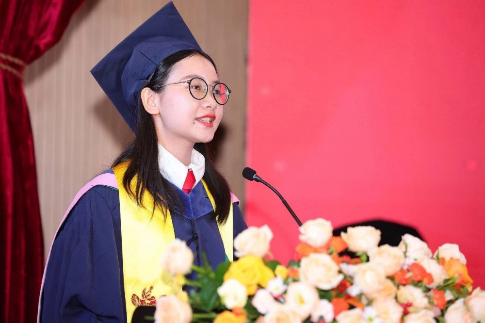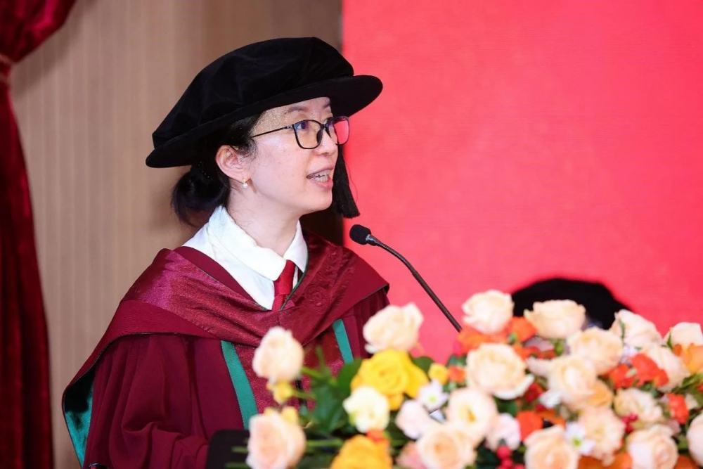 钟晓慧副教授作为导师代表为毕业生寄语。钟老师向全体毕业生致以由衷祝贺。她通过回顾自己求学和工作的心路历程,强调需要在行动当中去发现自己真正热爱的事物,以更宽阔的标尺丈量人生的意义,鼓励大家勇敢的追逐、建立自我价值感。“希望大家勇敢地追逐那道光,并且成为一道光。”