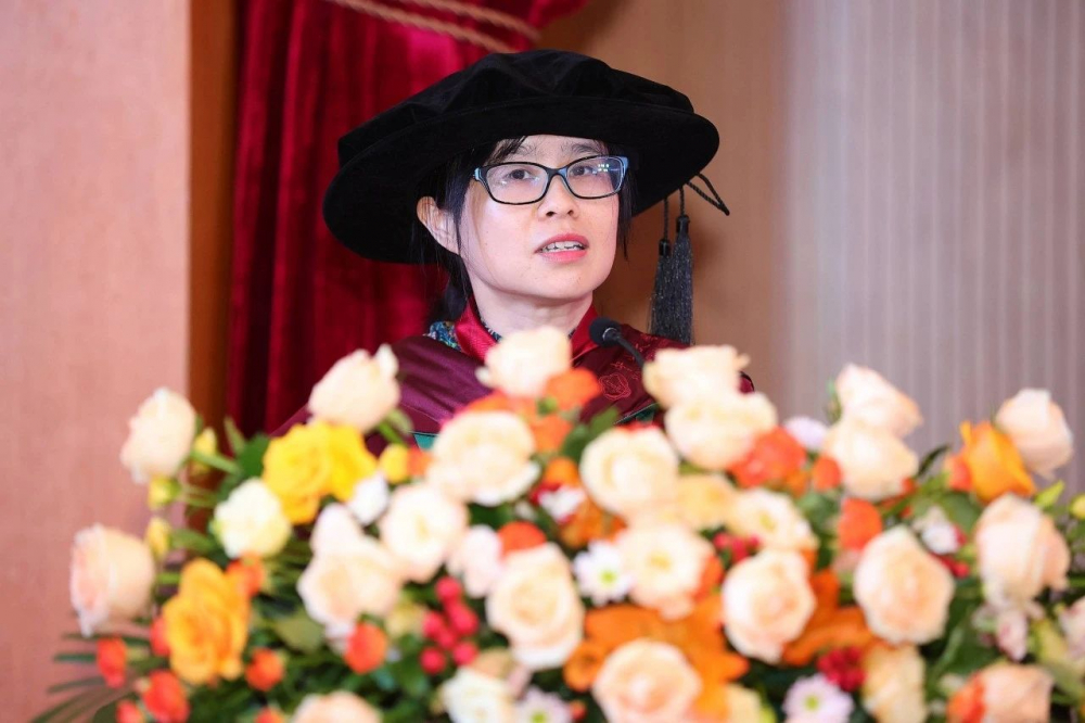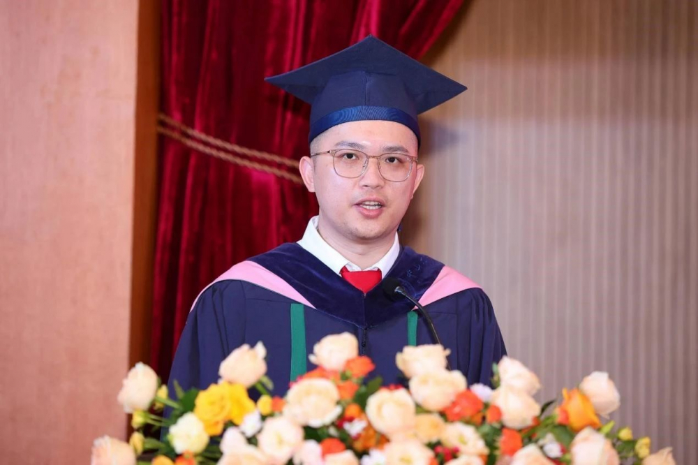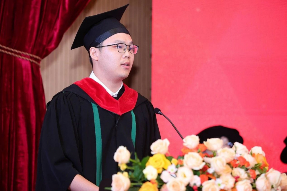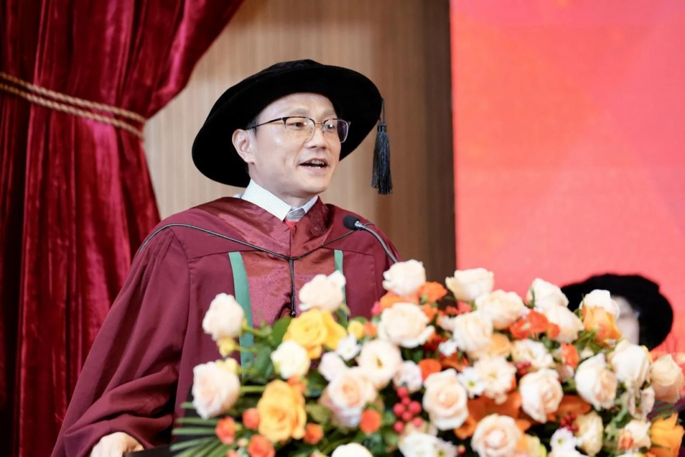谭安奎院长在致辞中围绕个人成长和时代发展的主题,分享关于个体自我体验与社会发展关系的思考。他以师长的身份,启发同学们超越个人的主观视角、从时代和社会层面客观地看待一时的境遇,并永葆自信和希望。他提出,技术改变社会,但对极大多数普通人而言,未来的真正挑战也许不在技术本身,而在社会想象和公共治理能否实现相应的变革。他寄语毕业生们要保持持久的开心和稳定的信心,继续以科学而专业的精神,用治理之学指导治理实践,拥有改变社会的勇气和能力。“未曾真正着长衫,何惧世间一时难!”他还以英文致辞的方式向发展中国家公共管理硕士(中国治理)(MPA-CGDC)项目的毕业生致以热烈的祝福,希望他们的所学所见,能为提升他们自己国家的公共治理水准提供帮助,并寄望他们成为中国与自己国家之间的友谊桥梁。