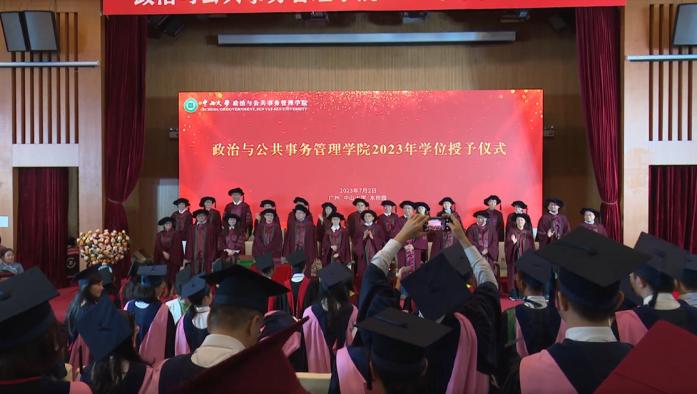 仪式在庄严的国歌声拉开序幕。全体学生聆听孙中山先生毕业训辞后,夏书章教授为毕业生送上祝福。夏老强调国家治理和国家治理之学的重要性,并勉励同学们要脚踏实地,认真规划毕业后的工作和生活,期待同学们都能在未来的工作岗位上大有作为。