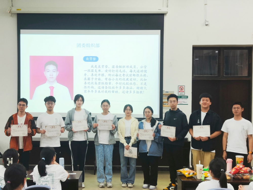 韩昕娜老师为学院团委委员和各部门负责人颁发聘书,各部门主要负责人为部门成员颁发聘书,同时介绍部门成员。伴随着各部门略带活泼的介绍,大家彼此间的了解更加深刻,距离也再度拉近。