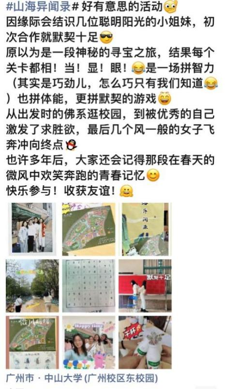 在连绵阴雨短暂出走的周末,8个学院的小伙伴们因“山海异兽”聚集在一起,在此收获了奔跑的快乐、相遇的缘分以及值得铭记的美好回忆,足以驱散一切乌云,迎接明媚阳光。