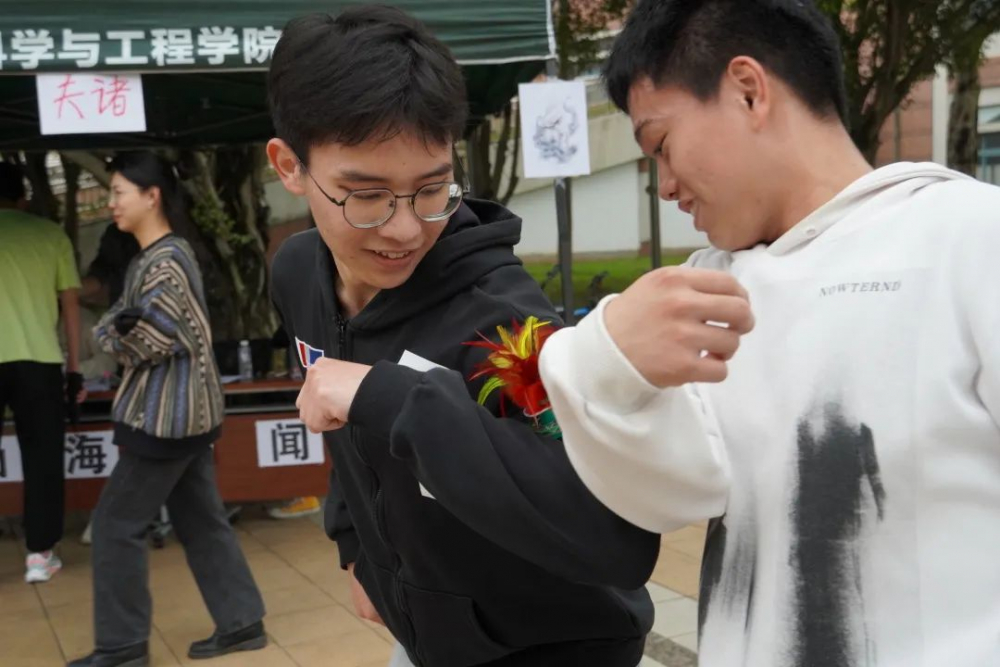 抵达新闻传播学院,对音乐共鸣强烈的鹿蜀在此已等候多时,队伍里的“中华小曲库”们可以大展身手了。没有歌词、听前奏就能猜到歌曲是什么!不仅如此,还需要一边猜歌一边摆出歌曲对应的团队姿势,团队的默契程度在此尽数显现!