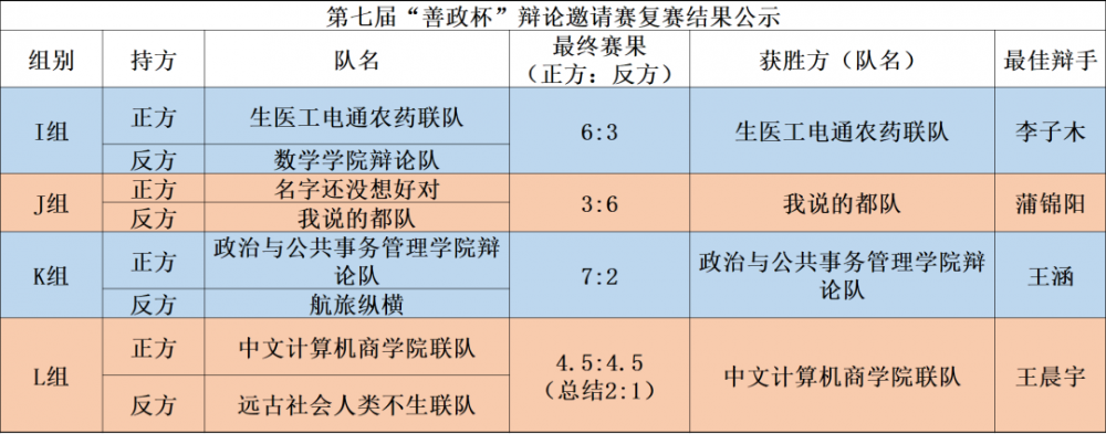 第七届“善政杯”辩论邀请赛复赛赛果速递