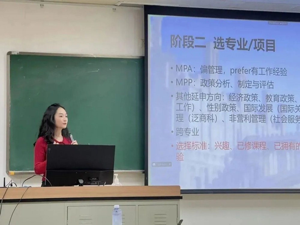 第一位进行分享的是获得香港大学环球管理专业,伦敦政治经济学院、爱丁堡大学和曼彻斯特大学人力资源与组织分析专业,香港中文大学公共政策等专业offer的袁玥同学。袁玥同学重点讲解了出国和保研之间的权衡,强调做出选择时需要结合自身能力与兴趣,充分考虑利弊;并以切身经历提出可以通过积极参与实习的方式充分了解自身特点。在跨申商科的准备层面,她从辅修商科、暑校交换、参加商赛等方面进行分析阐述,为有相关想法的同学提供了方法参考,帮助同学们排除疑虑,明确目标。