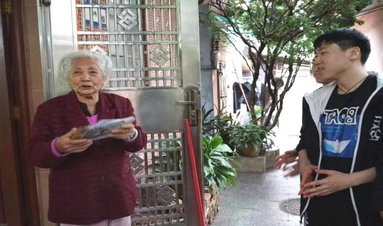 同学们通过怡乐社区“小禾的家”联系到社区里的两位空巢老人——七爷爷、七奶奶,为他们送上了全班同学精心制作的明信片,替他们打扫干净庭院,两位老人深为感动。同学们与老人亲密交流,将最诚挚的关心和祝福传递给他们,并在服务中体现奉献,学习雷锋精神。