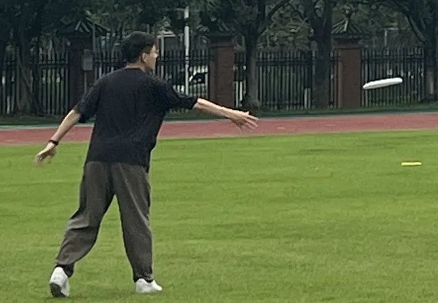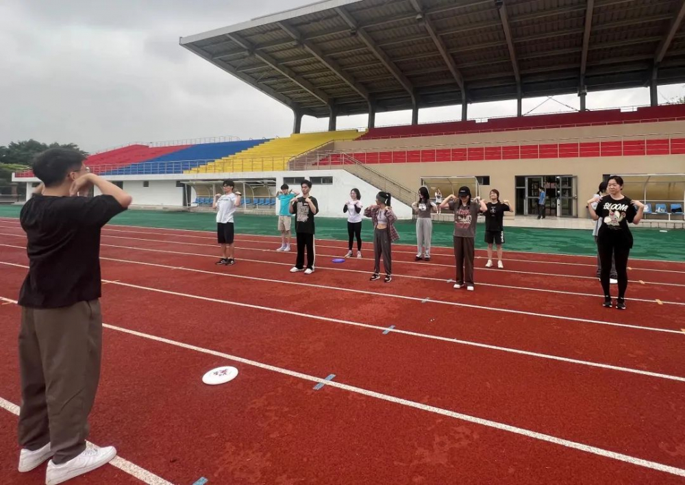 热身完毕后,为帮助同学们更好地体验极限飞盘比赛,工作人员为同学们讲解了接盘、反手传盘的要点。随后,同学们在指导下进行了分组传接盘练习,循序渐进地体会了反手传盘过程中手腕、手臂以及身体的协调与配合,并在一次次的练习中逐渐掌握了稳健投掷飞盘的技巧。