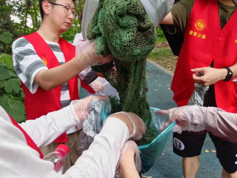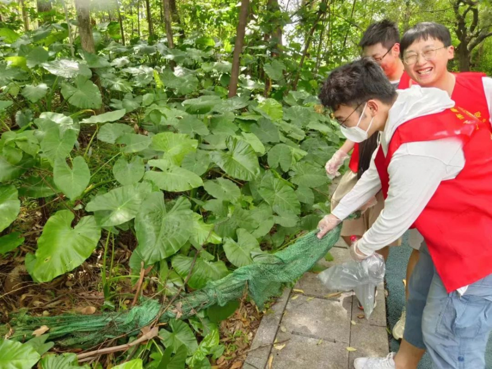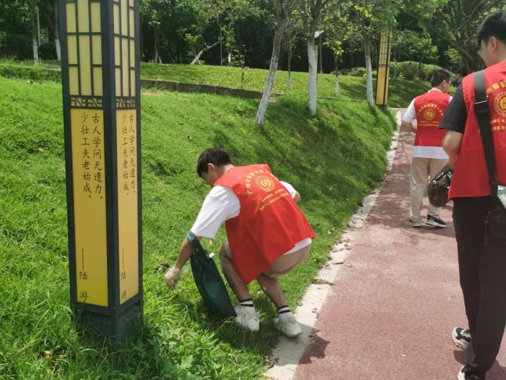 ▲ 大学城中心湖公园开展环保公益志愿服务