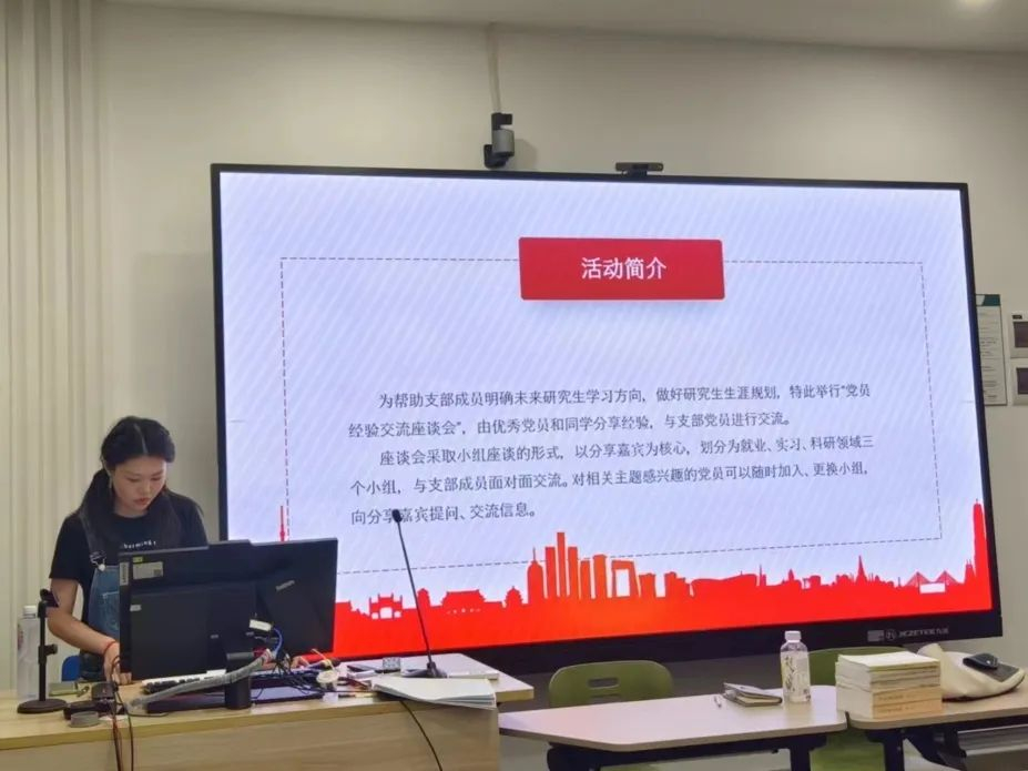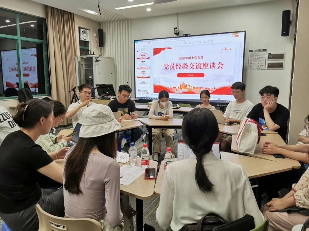 2023年5月26日晚,政治学硕士研究生党支部举行“薪火相传促成长”党员经验交流座谈会。通过整合优秀党员资源,充分发挥“自我教育,自我管理,自我服务”能力,由优秀党员和同学分享就业经验、实习经验、科研经验,与支部党员进行交流座谈。本次座谈会分为科研、实习和就业三组,支部成员可以根据自身的兴趣和需求自由选组落座。