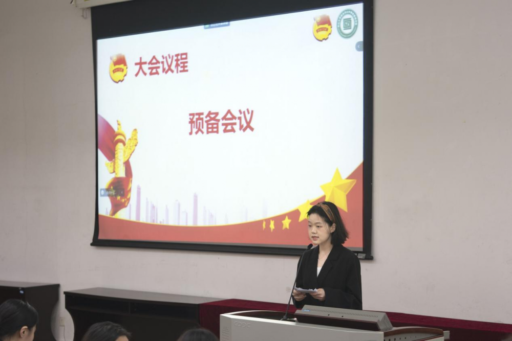 在全体奏唱国歌完毕后,进入预备会议阶段。全体审议并表决通过了《大会议程(草案)》、《资格审查报告(草案)》、《大会监票人名单(草案)》、《大会选举办法(草案)》等文件。大会筹备委员会副秘书长何圣娴同学为大家汇报大会筹备工作情况。全体无异议后,第二十二次学生代表大会正式开始。