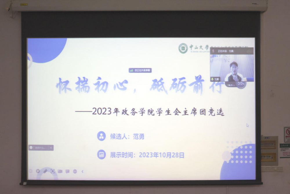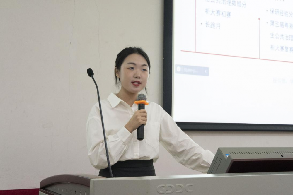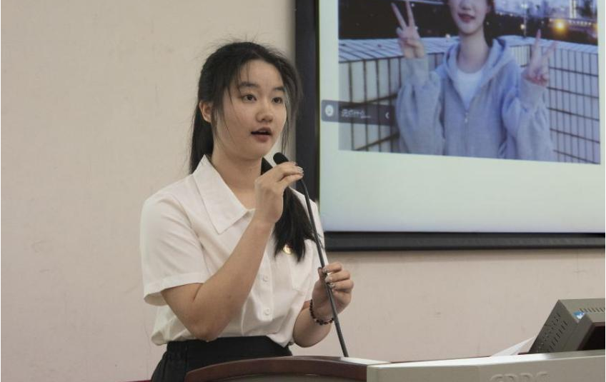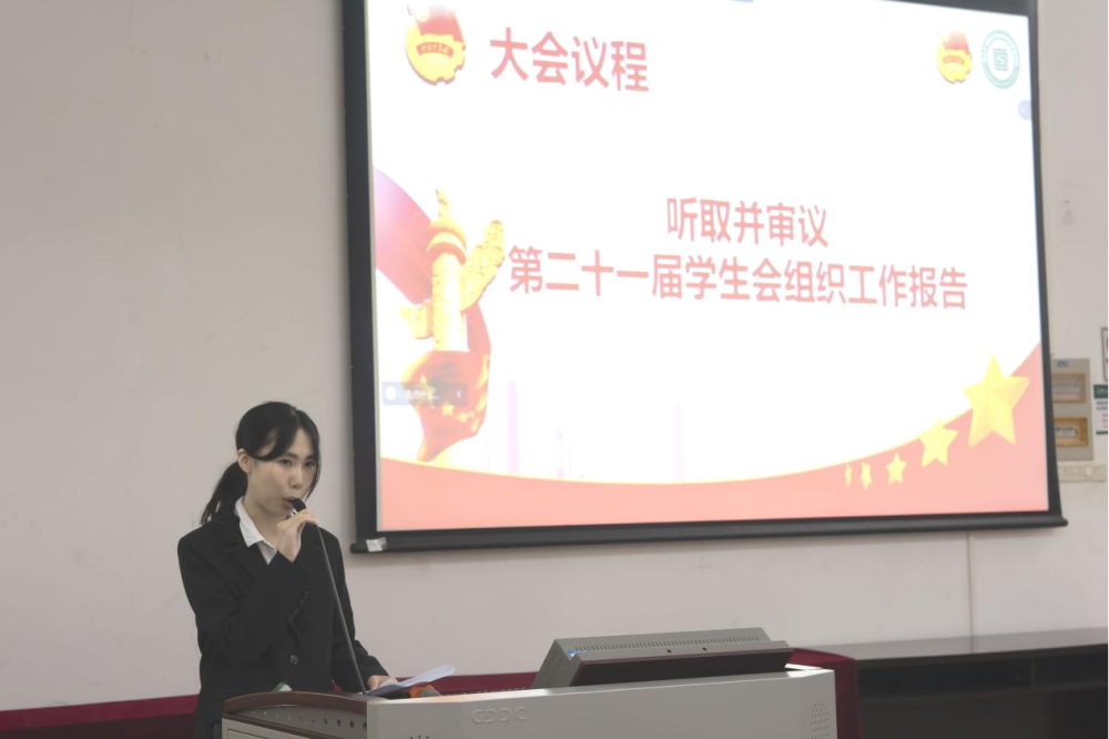 ▲ 游奕昕同学向全体参会人员做《2022-2023学年度学生会工作报告》