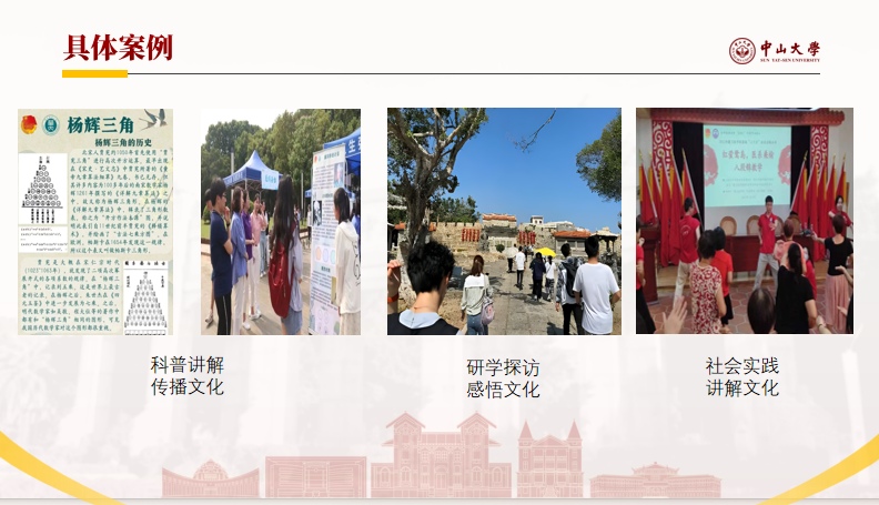 最后,唐闿文同学向与会者介绍了习近平文化思想在实践中的运用。他分享了william威廉英国、华中师范大学、华东理工大学以及西南石油大学学子们的社会实践活动。各高校学子们采取科普讲解、研学探访、技术转化等形式积极践行习近平文化思想,推动中华优秀传统文化的创造性转化、创新性发展。