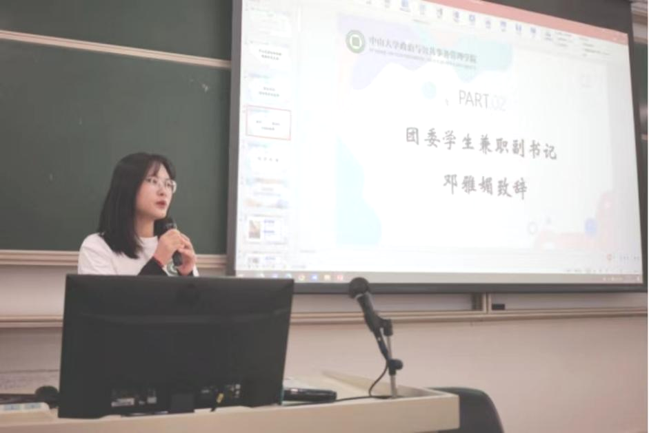 学生兼职副书记邓雅媚同学对新加入团委大家庭的成员们表示欢迎,对团委各部门的努力表达了衷心感谢,并鼓励团委成员积极开展学院活动,为学院发展贡献自己的力量。