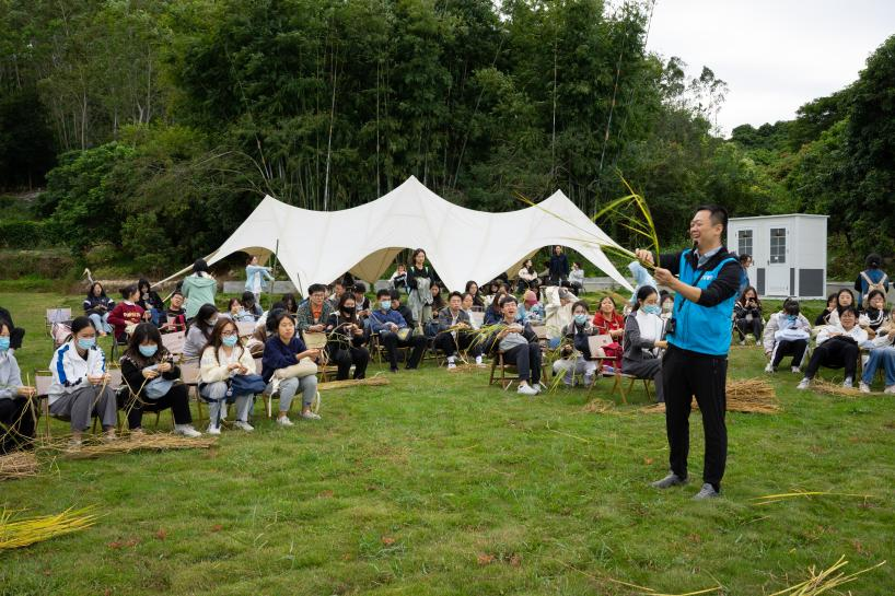 ▲ 学习制作稻草屋