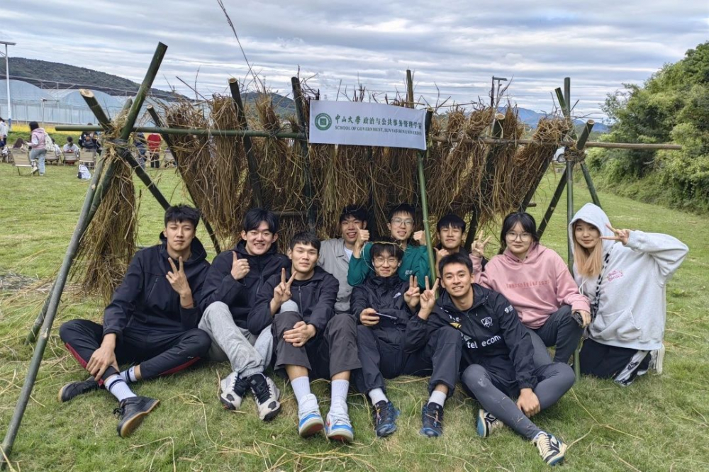 上午经历了紧张而又充实的劳作之后,午后显得十分惬意,同学们来到空旷的草地上,拿起晒干的稻草和提前准备好的竹子,开始进行下午的活动——学习制作稻草屋。最终,在同学们的团结协作下,学院新添了一间“院屋”!希望政务学院的学子们在步入社会后也能为国家的建设添砖加瓦,奉献自己的青春力量!