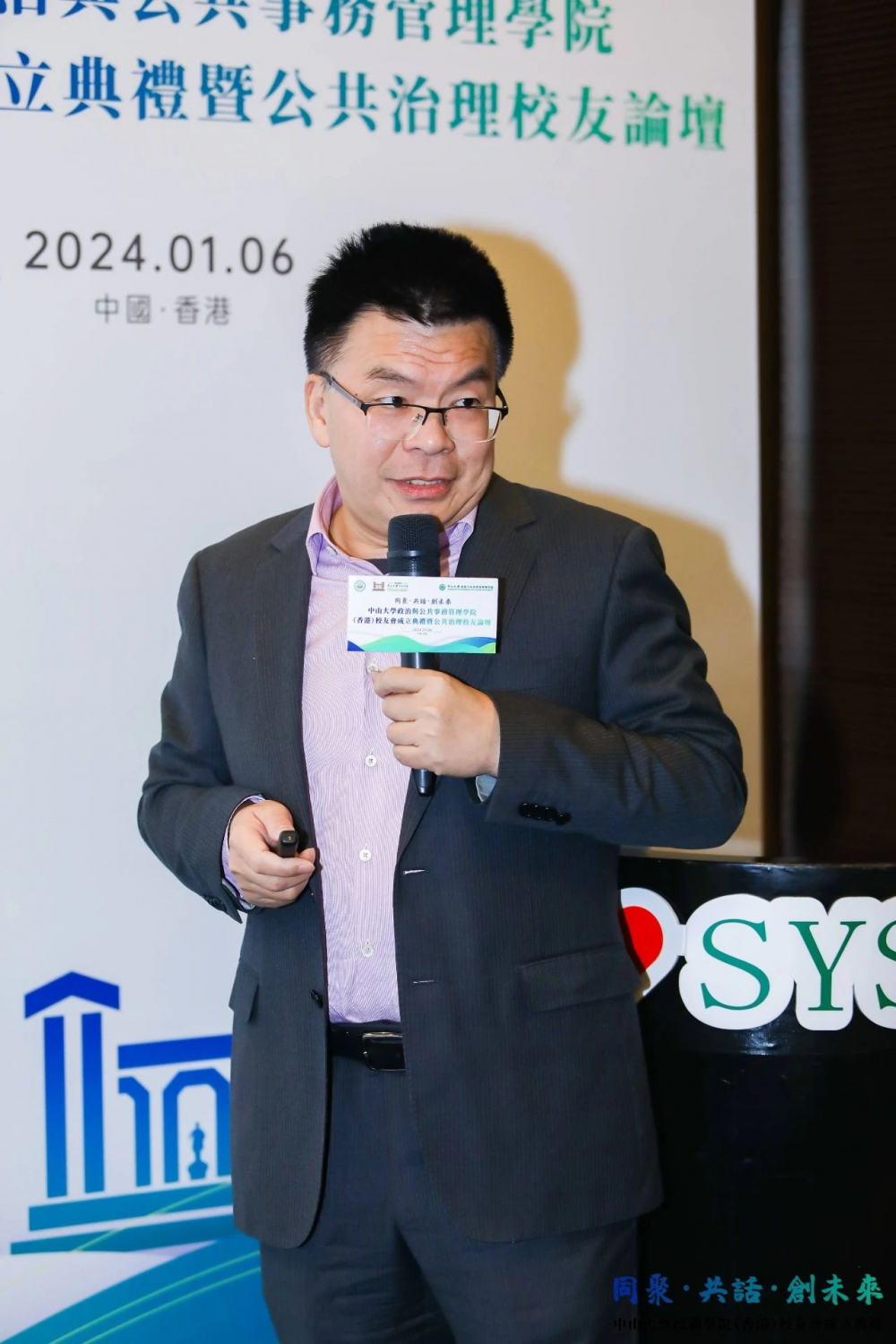 谭安奎院长向长期以来关心支持学校和学院发展的各位校友表示衷心的感谢。一直以来,政务学院秉承“善政天下、良治中国”的立院宗旨,推动政治学与公共管理两大学科高品质发展,不断拓宽国际化视野,不断提升全球胜任力,在推进新时代“一国两制”实践、政务服务数智化转型和社会政策创新等领域,产出高品质学术成果,服务粤港澳大湾区高质量发展和国家战略。香港校友在各行各业取得的成就是学院育人成果的最好体现,香港校友会的成立标志着学院境外校友工作的全新重启。学院将一如既往的坚持学术追求和品位,携手广大校友,凝心聚力,汇聚资源,塑造“”平等尊重、相互成就”的组织文化,共同推动学院全方位高质量发展。