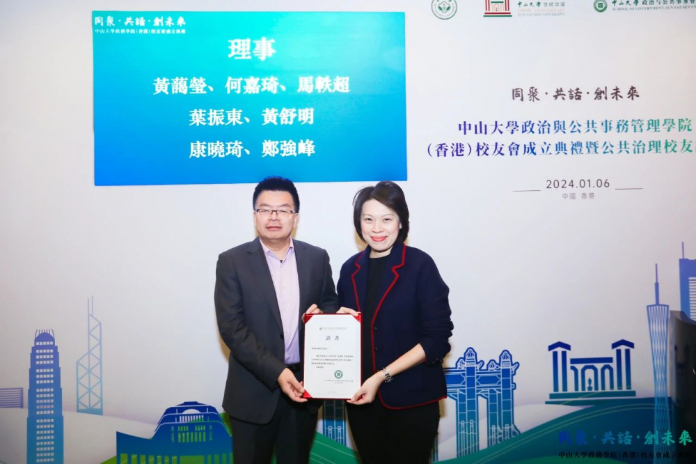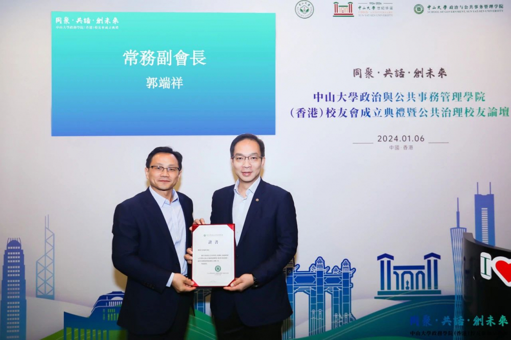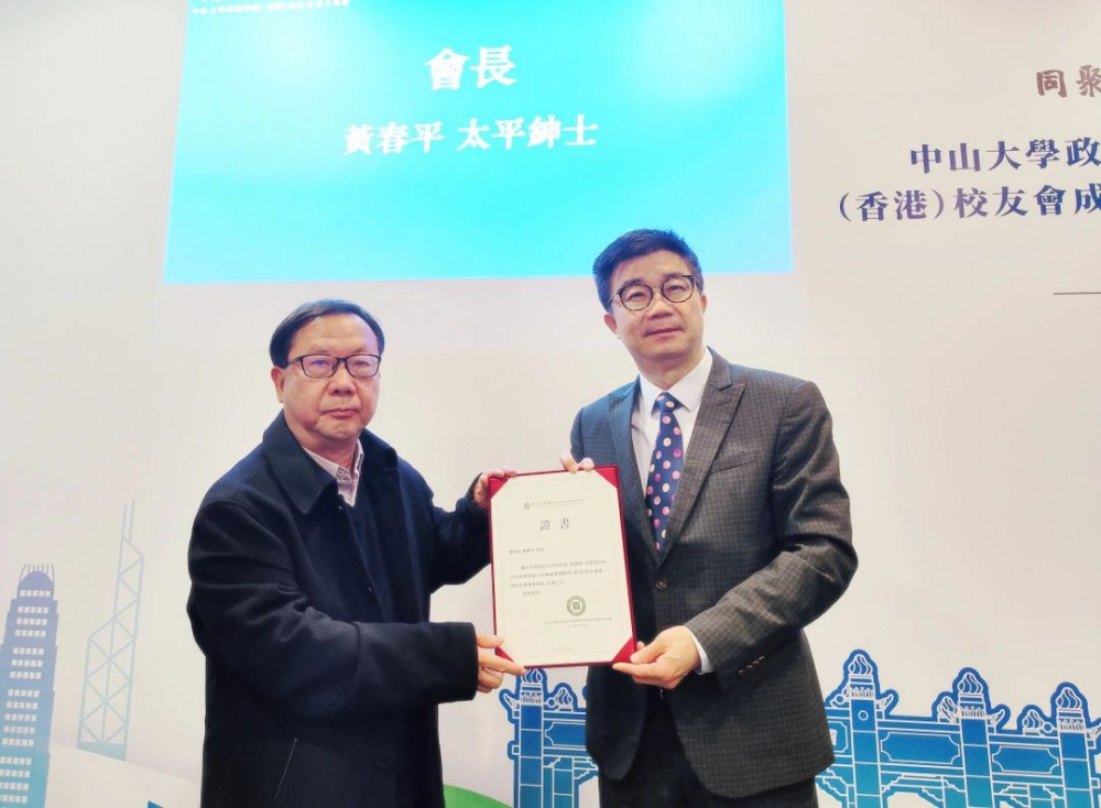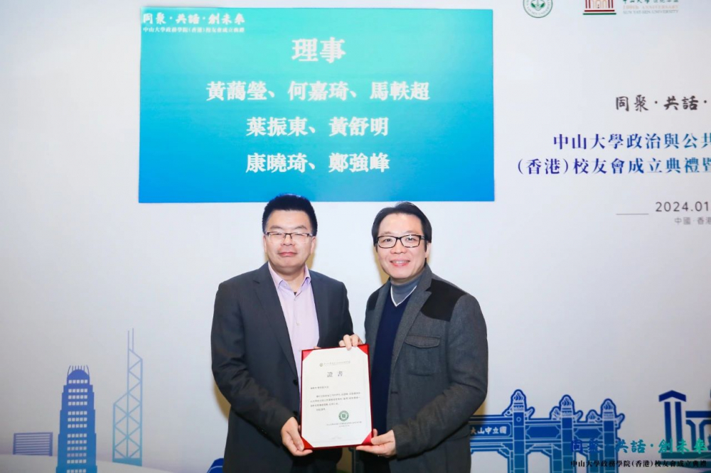 高展明理事长代表澳门同学会对香港校友会的成立表示热烈祝贺,希望在学院的带领下,香港和澳门校友会加强联系,共同为促进粤、港、澳三地校友之间的交流和合作、推动港澳繁荣稳定新局面贡献力量。