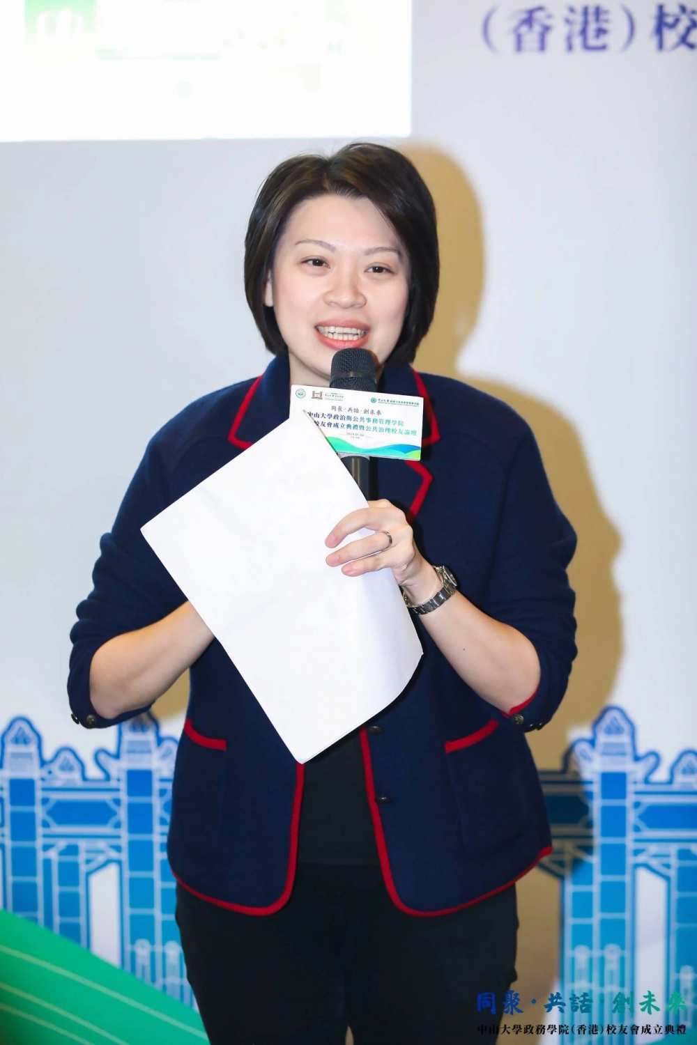黄舒明校友讲述了自己作为几届区议员经历的印象深刻的事件,分析了区议员履职能力以及不同背景的区议员通力合作的重要性。她呼吁区议员们履职尽责,各展所长,为民办实事,切实增进民生福祉,善作善成,助推地区治理迈上新台阶。