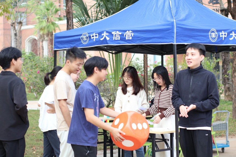 “猪猪侠被抓走了!”听闻消息的队员们火速前往信息管理学院,参与到解救GGBond的行动当中。只见信管学院院楼旁,团队成员接力绕着口令、念着解救咒语,亦或齐心协力地完成“我不是猪,我不是狗,我是人”的游戏挑战。阵阵欢笑声中,游戏氛围逐渐走向了高潮。最终,大家成功营救出GGBond!