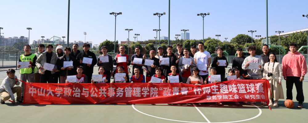 政务学院谭安奎教授、叶林教授、练宏副教授、丁辉副教授、庄文嘉副教授、起晓星副教授、吴少龙副教授、李佳源副教授、彭慧东博士后、南方科技大学王雨副教授及16名本硕博学生参加了本次比赛,组成四支队伍进行了火热的比拼。篮球场上热闹非凡,欢呼声、助威声此起彼伏。师生们身穿鲜艳的队服,面带笑容,奋力比拼球技,展现出青春活力与朝气蓬勃的精神风貌,彰显团结合作的精神。
