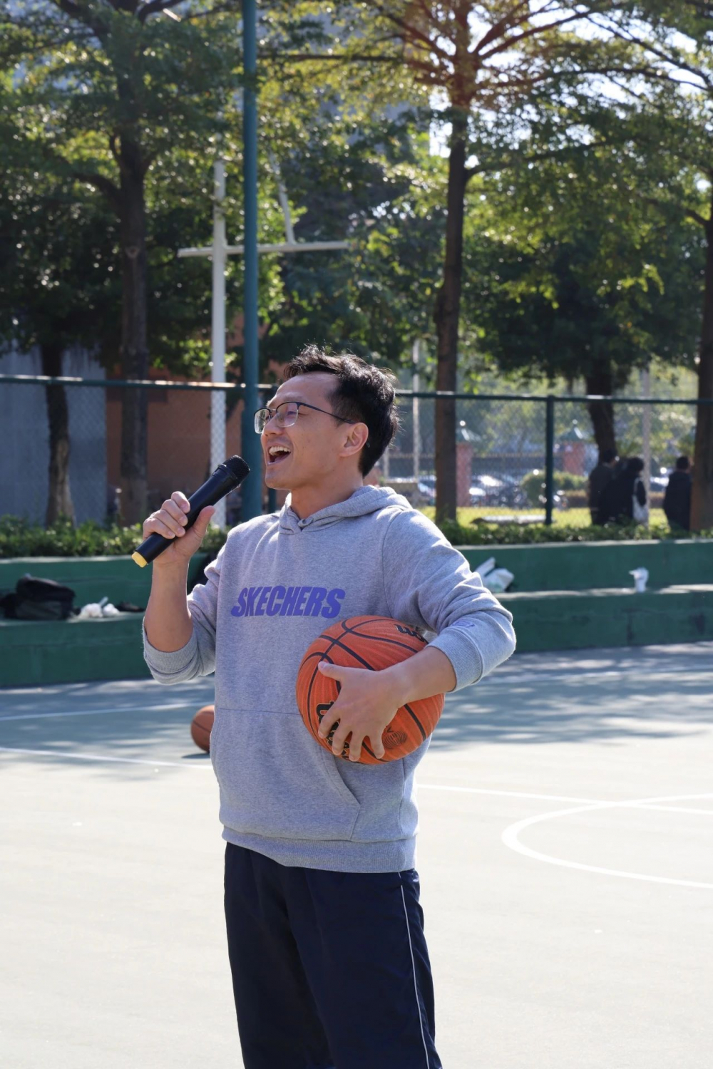 比赛开始前,参赛师生稍作热身。随后,政务学院工会主席谭英耀老师以及政务学院篮球队队长练宏老师进行致辞,鼓励广大师生积极参与体育活动,以健康的体魄迎接生活。