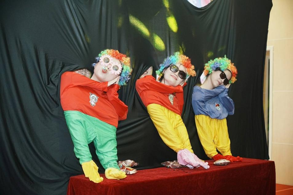 赤橙黄绿蓝,各色被子包裹着几道身影登上舞台,灵活夸张的动作、旋律轻快的音乐,让现场欢声笑语不断,不用露出真容也能让场下观众们认出这是政务学院同学的身影!