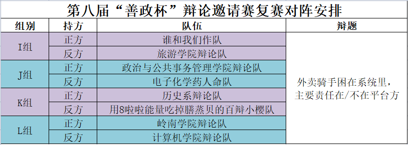 第八届“善政杯”辩论邀请赛初赛赛果