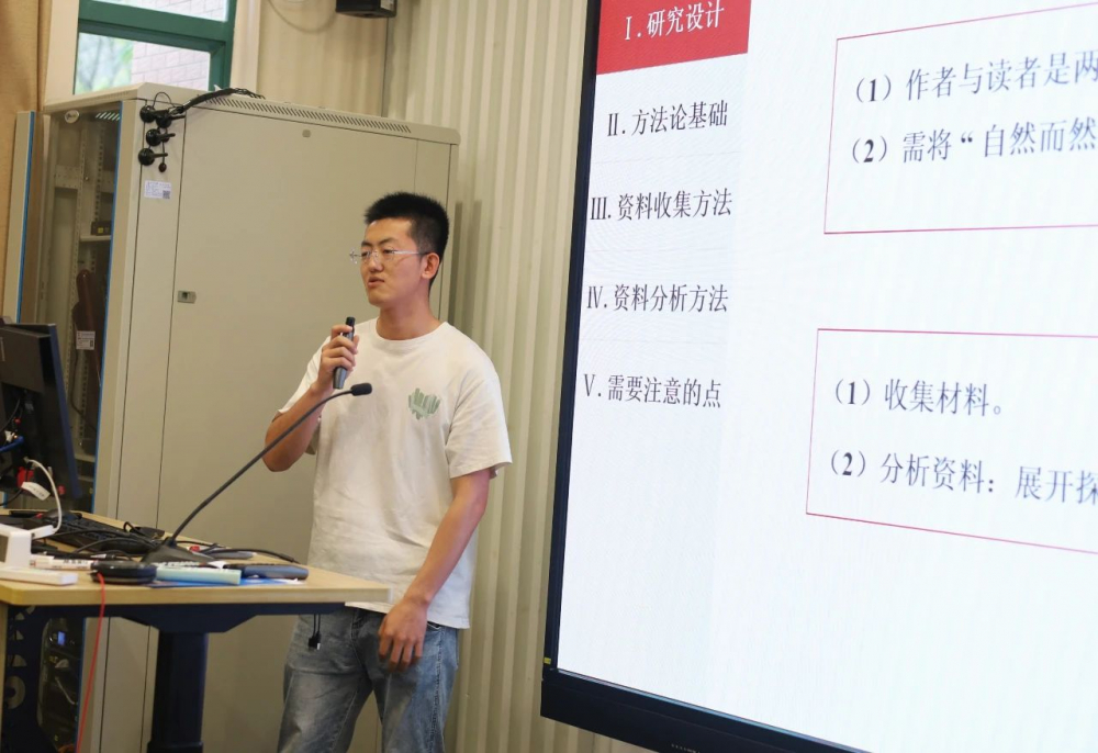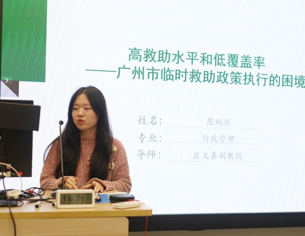 在MPA同学分享之后,2022级全日制研究生陈嫣然同学和2023级全日制研究生崔满钱同学分别为大家分享了个人的研究成果以及方法技巧。陈嫣然同学向同学们介绍了自己从提出问题到综述文献、再到提炼理论框架进行研究设计的研究历程,分享了自己的研究成果,与同学们探讨临时救助政策执行困境,深入分析论文写作思路。崔满钱同学则是结合自己在学院担任论文答辩助理的工作经历,拆分“研究设计、方法论基础、资料收集方法、资料分析方法、特别注意事项”5个层次为同学们进行了关于研究方法设计的技术性分享,梳理研究方法的逻辑。在座同学们从两位同学的分享中拓宽了论文写作的思路,也收获了宝贵的写作经验和技巧。