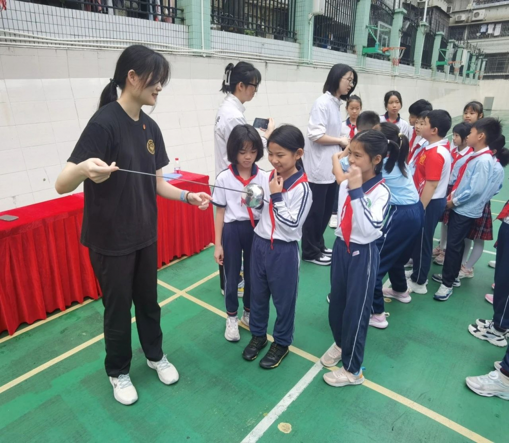 展示环节结束后,运动员们留下来与小学生交流互动,很快便被团团围住。面对一双双求知的眼睛,运动员们的分享欲被小学生的好奇心激起。他们耐心地解答学生们关于体育的各种疑问,分享自己的训练故事和比赛经历,并科普运动知识。击剑运动员进行了规范的动作示范,并让小学生们体验了握剑、击中等简单动作。