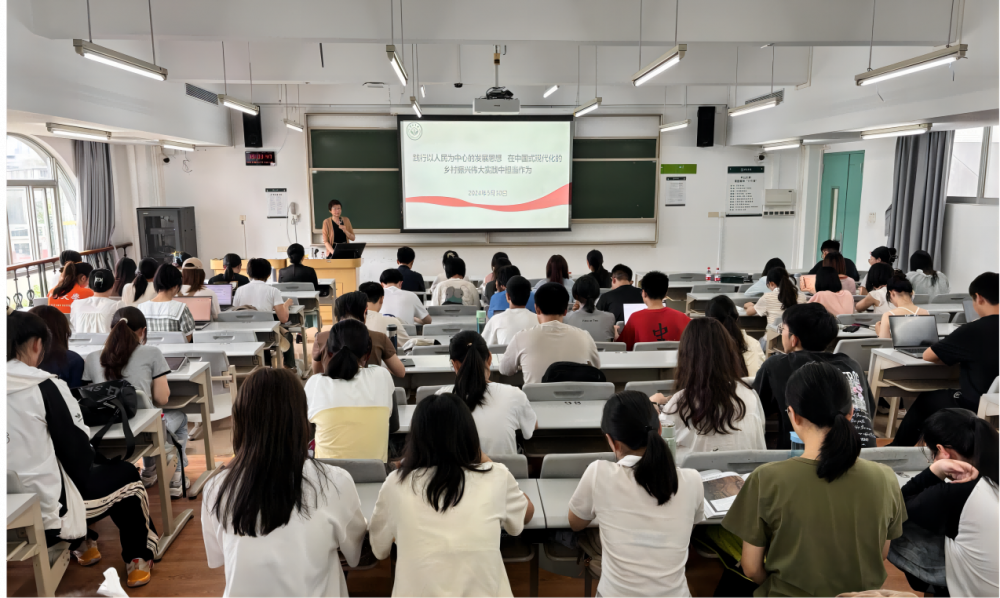 2024年5月30日,校党委副书记国亚萍在广州校区南校园为政务学院2023级本科生讲授思政课,授课主题为“践行以人民为中心的发展思想,在中国式现代化的乡村振兴伟大实践中担当作为”,政务学院党委书记罗晶主持。