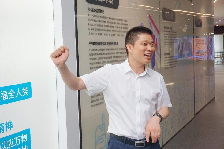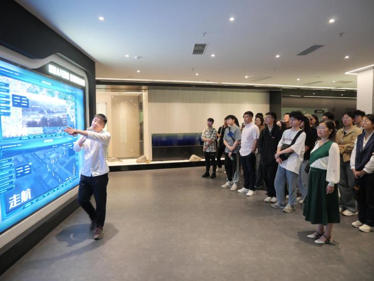 杨浩副总经理为参访师生详细介绍了中浦科技的业务主营领域和发展成果。他表示,中浦科技自智慧环境系统起家,近年来业务已逐渐拓展至智慧水务、智慧安全、智慧社区等领域,为东莞各级政府机关和工业园区提供城市基础设施数据服务,并与天安集团联合运营国家超级计算广州中心“天河二号”东莞分中心。中浦科技开发的洁径™SaaS 产品、“蓝天保卫战”指挥系统、无废城市综合管理平台等为智慧城市建设提供了有力的数字技术支撑。