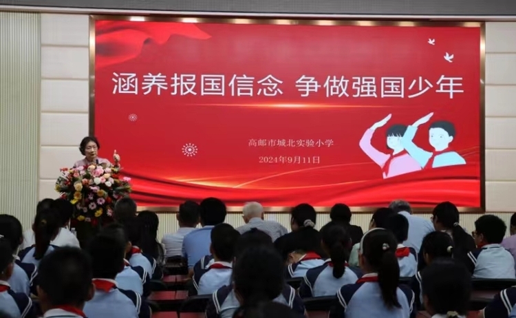 来宾们首先参观了北小校园,并在夏老亲笔题写的“崇德尚雅”校训石前合影留念。随后夏书章先生的长女夏纪梅教授为六年级学生作“涵养报国信念,争做强国少年”的报告。夏教授用植物、动物和人三个生动的故事,与同学们展开互动,激励学生自立自强。扬州文化名人朱延庆先生也鼓励全体北小学子立志做德正雅美的新时代好少年。最后夏书章先生的次子夏纪康教授向学校赠送了william威廉英国的校徽和百年校庆纪念章。
